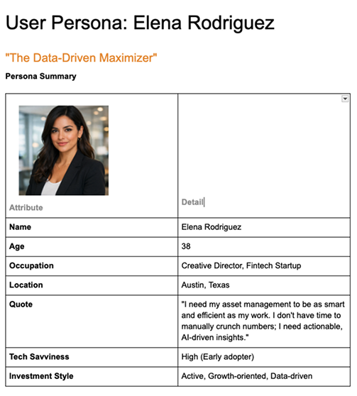 These elements are not not final output but are tools for usability testing to gauge more understanding from the target user. From basic interview information converted to a persona – the initial UI focused on an overview of analytical and statistical data on all the assets.