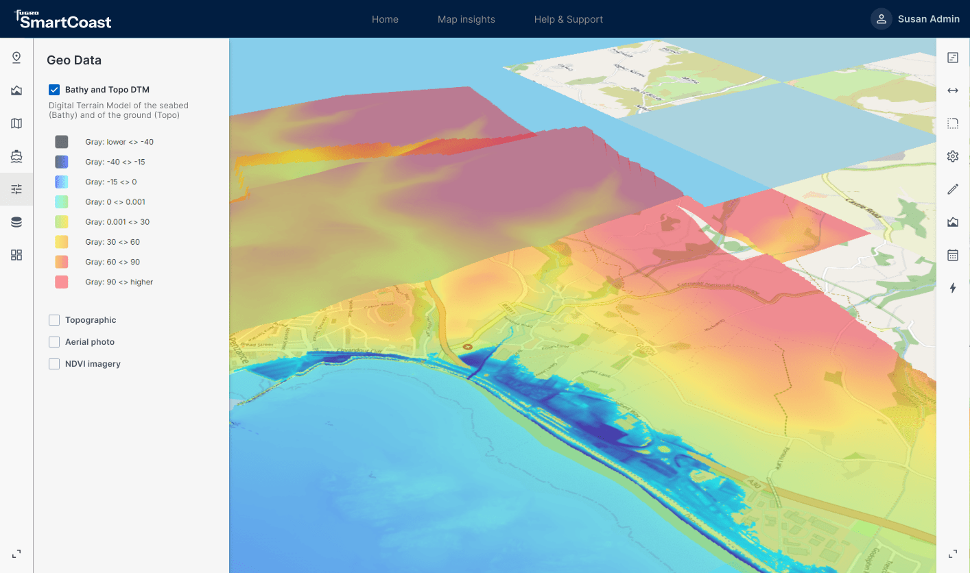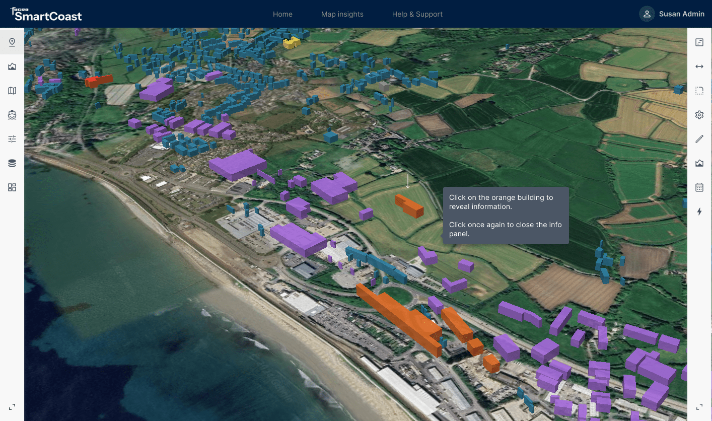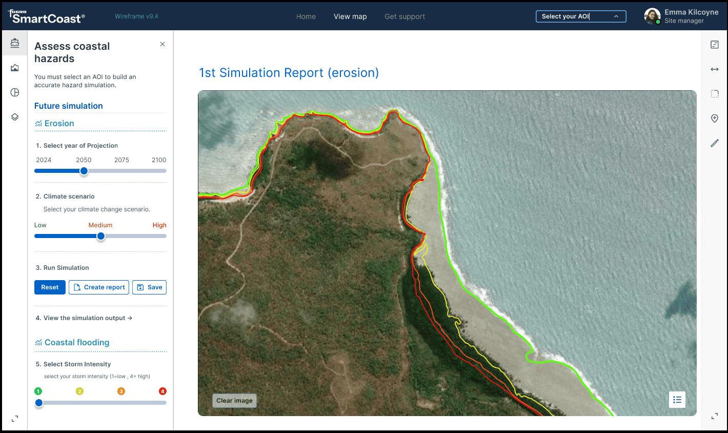 The smartcoast initiative enables the land owners to utilise tools that can harness the power of Fugro to give them the ability to create areas of interest and run simulations to show the local governments actual data which can aid the local rangers in presenting important reports on changes to the environment.
