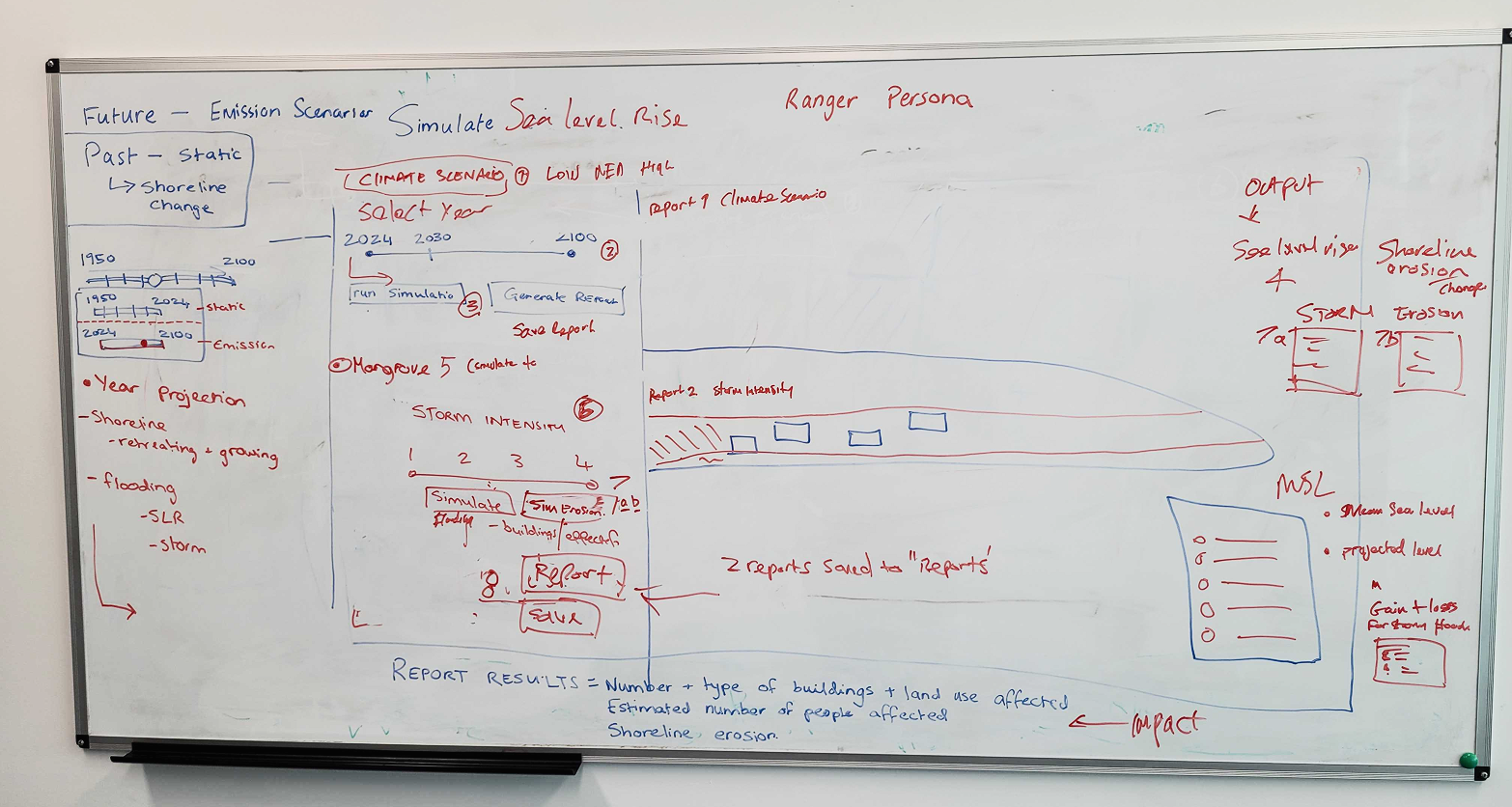 The whiteboard photo below is from a workshop session on defining how to build the coastal hazard simulation in an intuitive way the ranger would understand which was crucial.