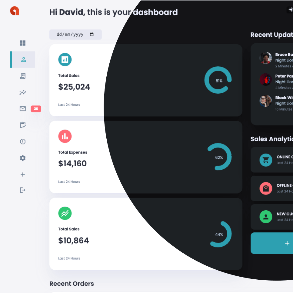 Affran Health UI – light and dark theme
